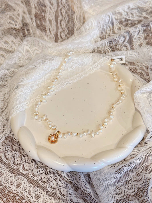 Inspired by the quiet beauty of moonlit gardens, this necklace captures the delicate dance between strength and softness. The sterling silver vines twist and curl like nature’s own artistry, symbolizing growth and connection, while cradling a luminous freshwater pearl—a tribute to the way light lingers on dewdrops at dawn.