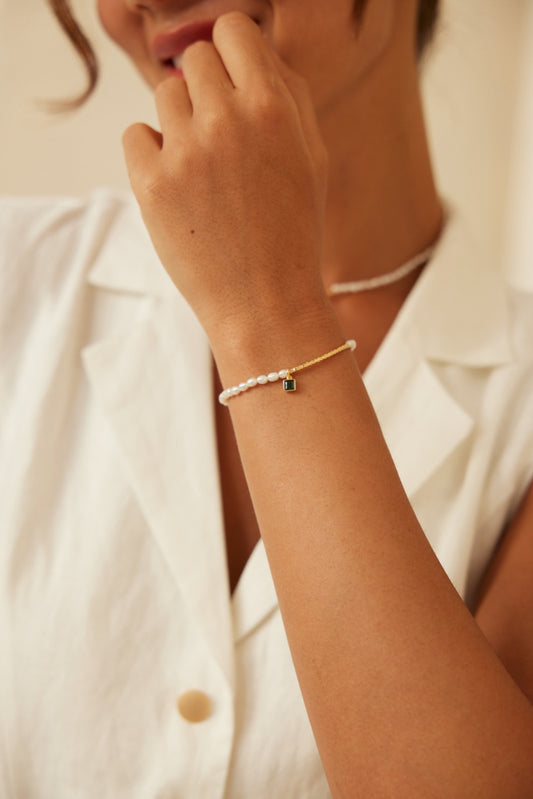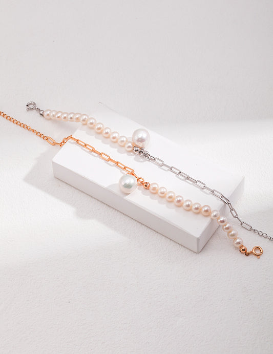 Silver Bracelet – Half Chain, Half Natural Pearl
